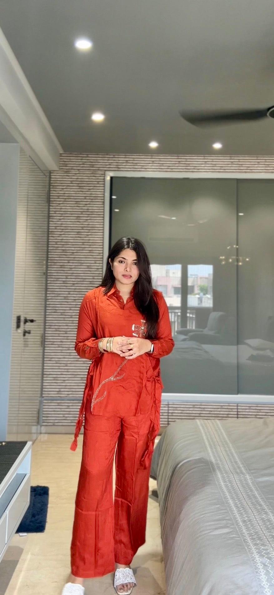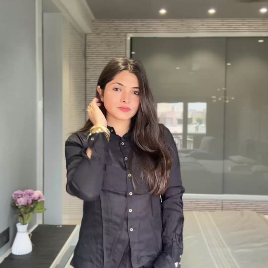 stunning three piece coordset is perfect for any occasion. The detachable cape adds versatility, while the handwork detail elevates the look. Make a statement with this elegant and stylish outfit.