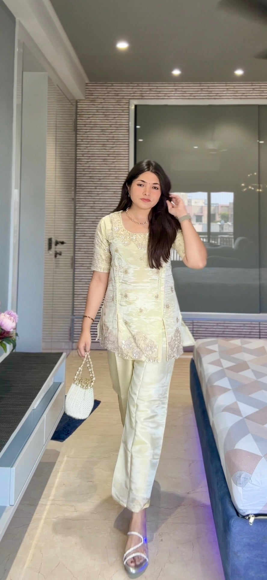 Expertly crafted with tissue fabric and intricate zardozi work, our Tissue zardozi work product offers an elegant and versatile option for any occasion. Its stunning design allows it to be worn as a coordset, making it perfect for any function. Elevate your look with this luxurious and timeless piece.