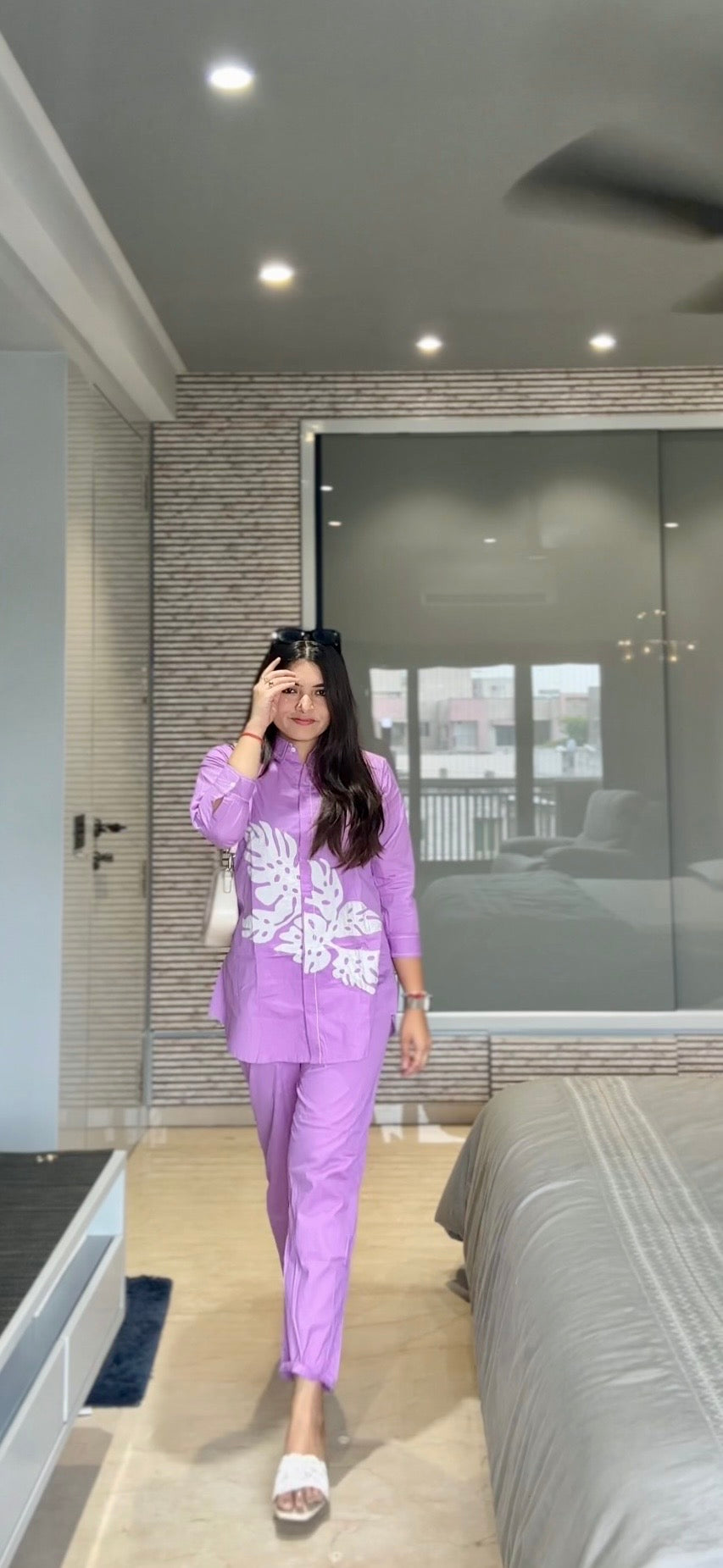 Experience luxury and comfort with our Lavender Coordset! Made from soft and breathable cotton fabric, each piece is handcrafted with intricate detail. Relax in style and elevate your wardrobe with this must-have coordset.